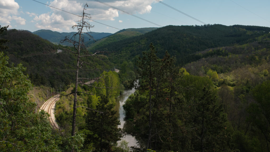 To dzień, w którym jest wszystko: asfalt, brak asfaltu, coś pomiędzy asfaltem, a jego brakiem. Są góry duże, pagórki, trochę płaskiego, widoki dobre i niedobre – rozważam zmianę trasy i kierowanie się cały czas parkiem aż do Burgas, które leży na wybrzeżu i z którego da się wrócić pociągiem do Sofii. Tu warto dodać, że tak fajnie położonych torów nie widziałem od czasu wizyty w Czarnogórze. Podróż pociągiem dopisuję więc do obowiązkowych atrakcji.