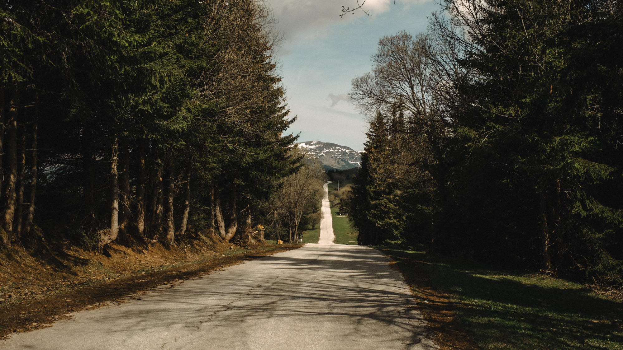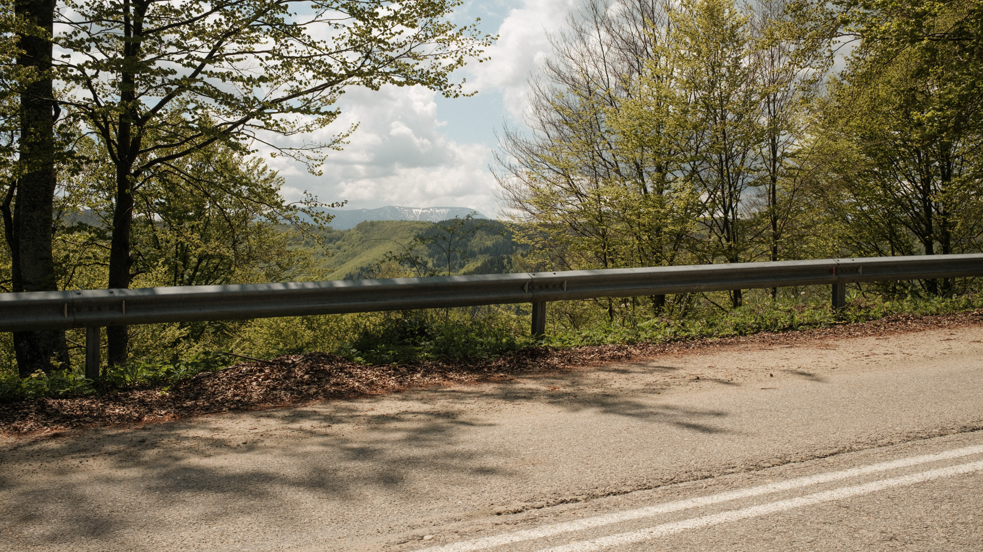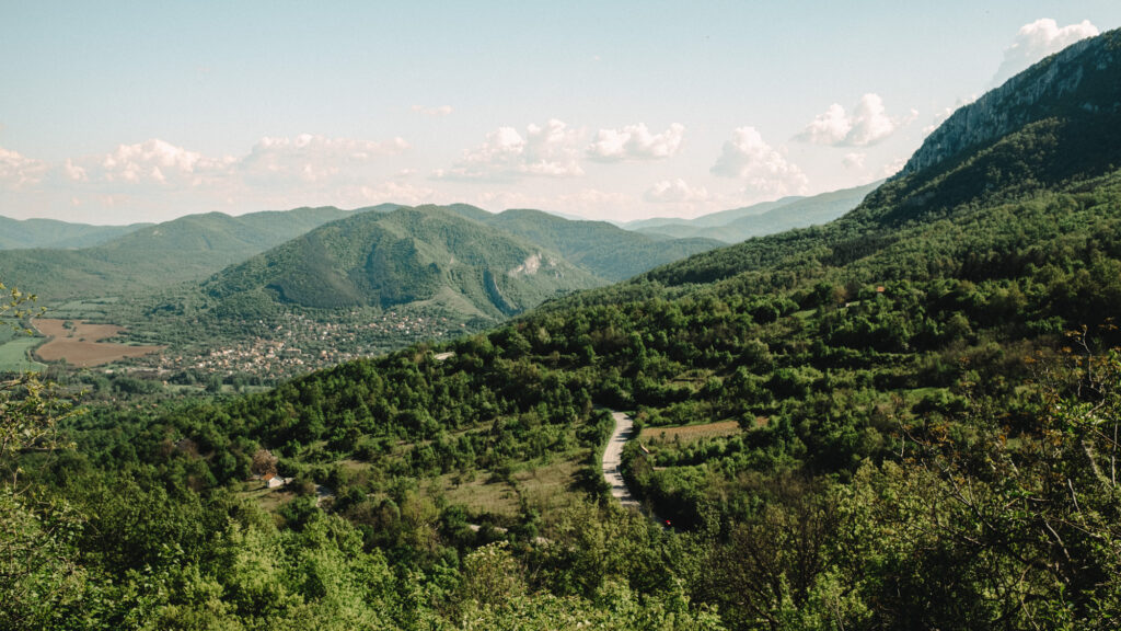 Gdzieś koło 30. kilometra wjeżdżam w tereny zielone i już do końca dnia jadę bardziej lub mniej przyjaznymi drogami przez pagórki. Od dróg całkiem małych, na których przez długi czas nie spotykam nikogo, po krajówki, choć również niezbyt zatłoczone. Największym pokonanym podjazdem jest Col de Milanovo, czyli 7km ze średnią powyżej 6% – jak się potem okaże, takich podjazdów jest w kraju z milion.