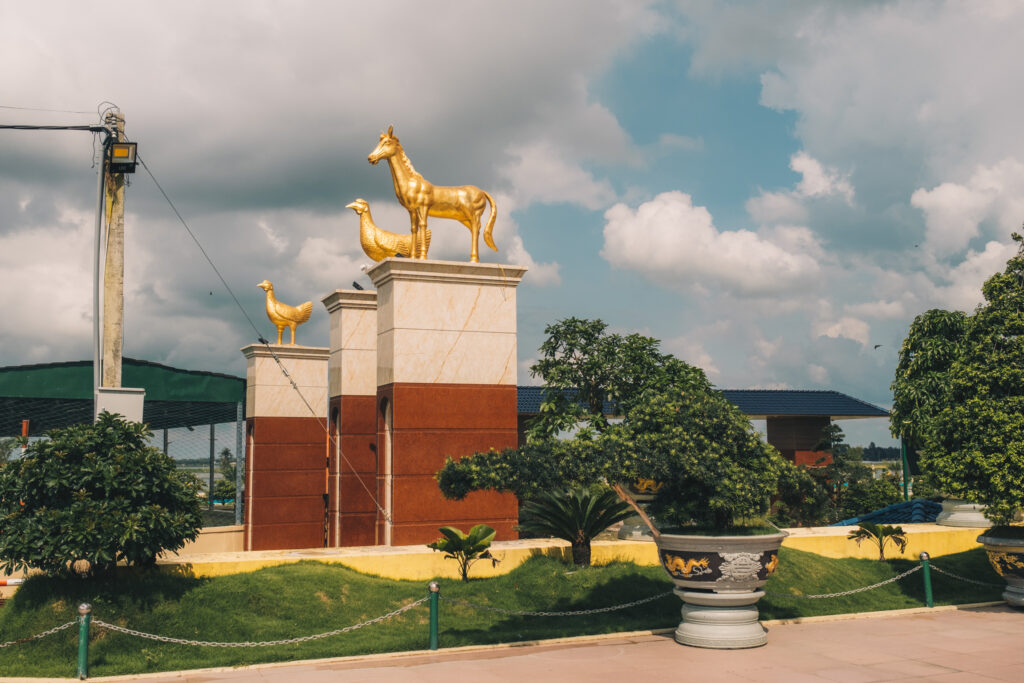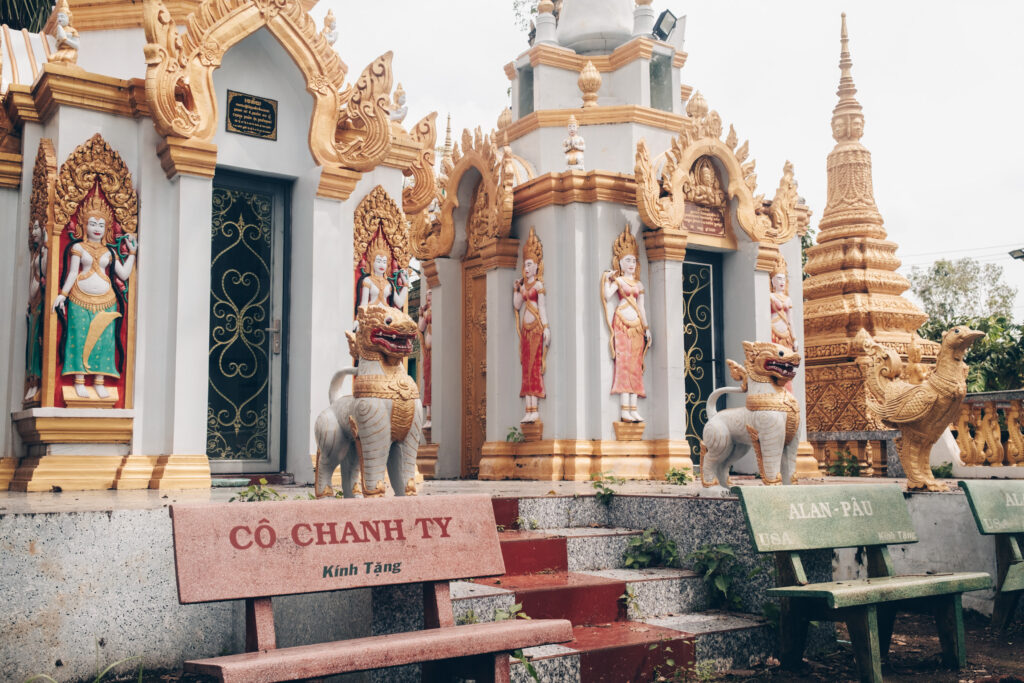 – middle, or the blazing sun. As we approach the larger city, Châu Đốc, and the Mekong River, the crowds increase significantly, and the views become somewhat monotonous. At the climax, we find a bench in the shade and decide to slowly die there. This doesn't work out, as I still have a few things to see, and I have to stick to my plan. Even if it just means following a bearing.