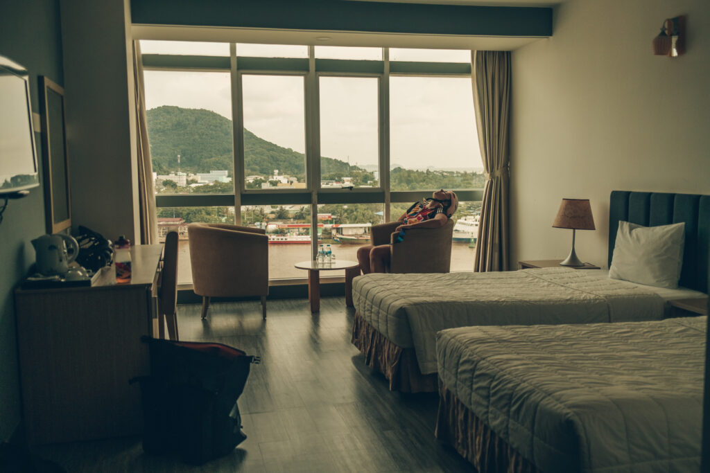 We're sleeping in the last bastion before the border – Hà Tiên. It's a typical tourist town, as it's where ferries to Hawaii depart from. It's so touristy that we meet two elderly white British men there, and we realize they're the first white faces we've seen since leaving the airport in Saigon. The area looks like Kołobrzeg in the middle of the pandemic, only with good weather. Nice, small hotels, promenades, stalls… but there aren't many people, and it's almost peak season. We have dozens of hotels to choose from, and they're ridiculously cheap compared to how they look in photos – most are between 50 and 70 złoty for two people, including breakfast. We go all out and get a room in one of the most expensive ones. One right by the port, a tall, luxurious hotel.River Hotel Ha tien"We pay 120 PLN, but without breakfast, because it seems a shame to open a restaurant just for us. It's a 7-story building with a swimming pool, a large restaurant, three receptionists, and underground parking, and yet we don't see any guests inside.