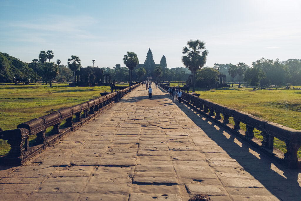 Theoretically, the last day of our trip – the culmination of our vacation. A place that attracts around a million tourists a year – all of them probably spend the night in Siem Reap. Before the pandemic, it was several million a year. A place that's on the Cambodian flag and, for most people in the world, the only association with Cambodia. That is, of course, if anyone knows Cambodia exists. I'm talking about Angkor Wat – the world's largest temple complex. I think the term "largest" might have been used at the time of its construction, but more in the context of the Khmer king Suryavarman II. Back then, Angkor was also called Yasodharapura – the change seems good from the perspective of buying tickets to this place. It's about 4km from the hotel, and we bought tickets online – nearly 40 USD per person, so I have the impression that over the last thousand years, the construction might have paid off. I'm going there skeptical, but I'm trying to appreciate what I see. Of course, I don't succeed. We stand on the famous bridge, look at the building, and all I can think is, "Oh, cool." Maybe if we had a guide, maybe if we could appreciate the small details. But I guess we can't, because what we love most about the entire visit is a teddy bear head drawn by some vandal on one of the historic walls.