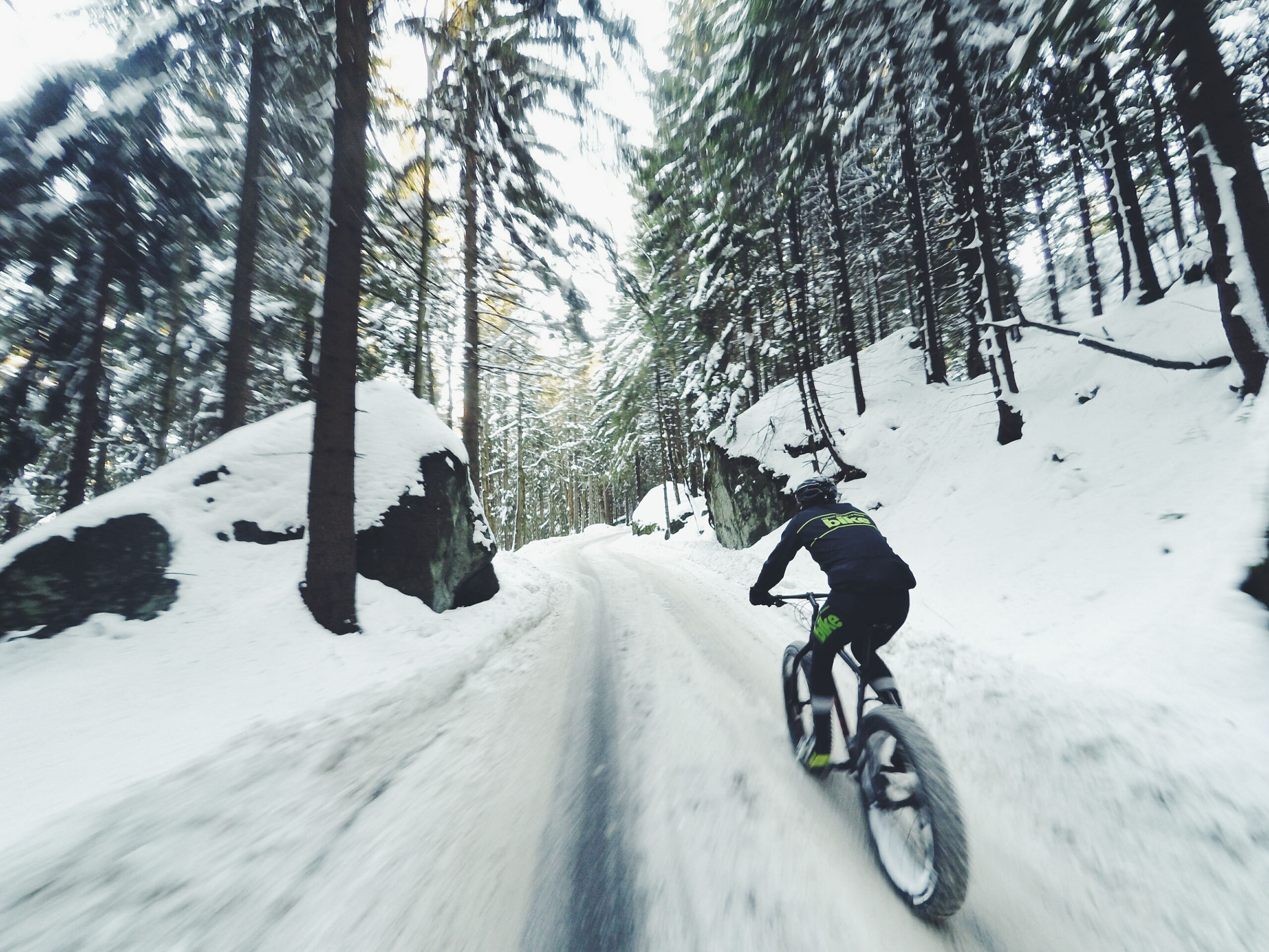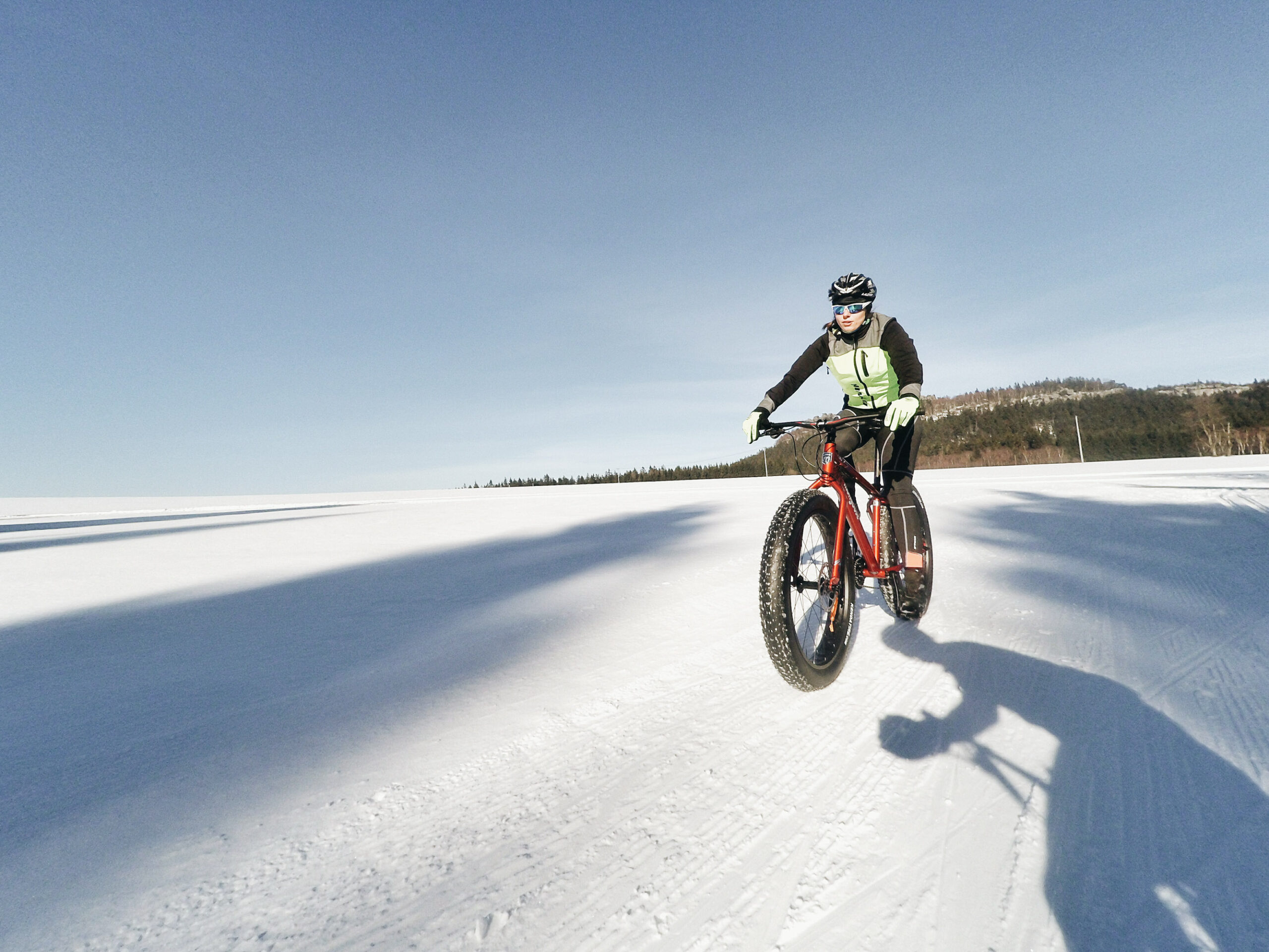 Ale to nieważne, przyjechaliśmy tu jeździć. 200 metrów od domu zaczynają się trasy narciarskie i rowerowe. Szybko okazuje się, że w okolicy wszystko co nie jest asfaltem i 2-metrową zaspą, jest tu biegową nartostradą. Z lekkim zażenowaniem ruszamy nią, trzymając się możliwe blisko krawędzi – faty nie zostawiają jednak za sobą śladu, nic nie zniszczymy. Czujemy gdzieś w środku jednak, że dużo fajniej byłoby przyjechać tu z nartami. Przy pierwszej możliwej okazji, podążając za marzeniami skręcamy w kopny śnieg. Efekt tego eksperymentu jest dwojaki w zależności od prędkości. Jeśli zrobimy to z rozpędu, przednie koło momentalnie zatrzyma się w śniegu, a tylne zmieni wektor prędkości z poziomego na pionowy i zanim dokonamy niezbędnych obliczeń definiujących naszą oczekiwaną pozycję, znajdziemy się głową w śniegu. Przy prędkościach niższych oba koła zatrzymają się jednocześnie i niezależnie od kadencji będziemy mogli kręcić w miejscu, nie wywracając się na boki – widok dość komiczny.