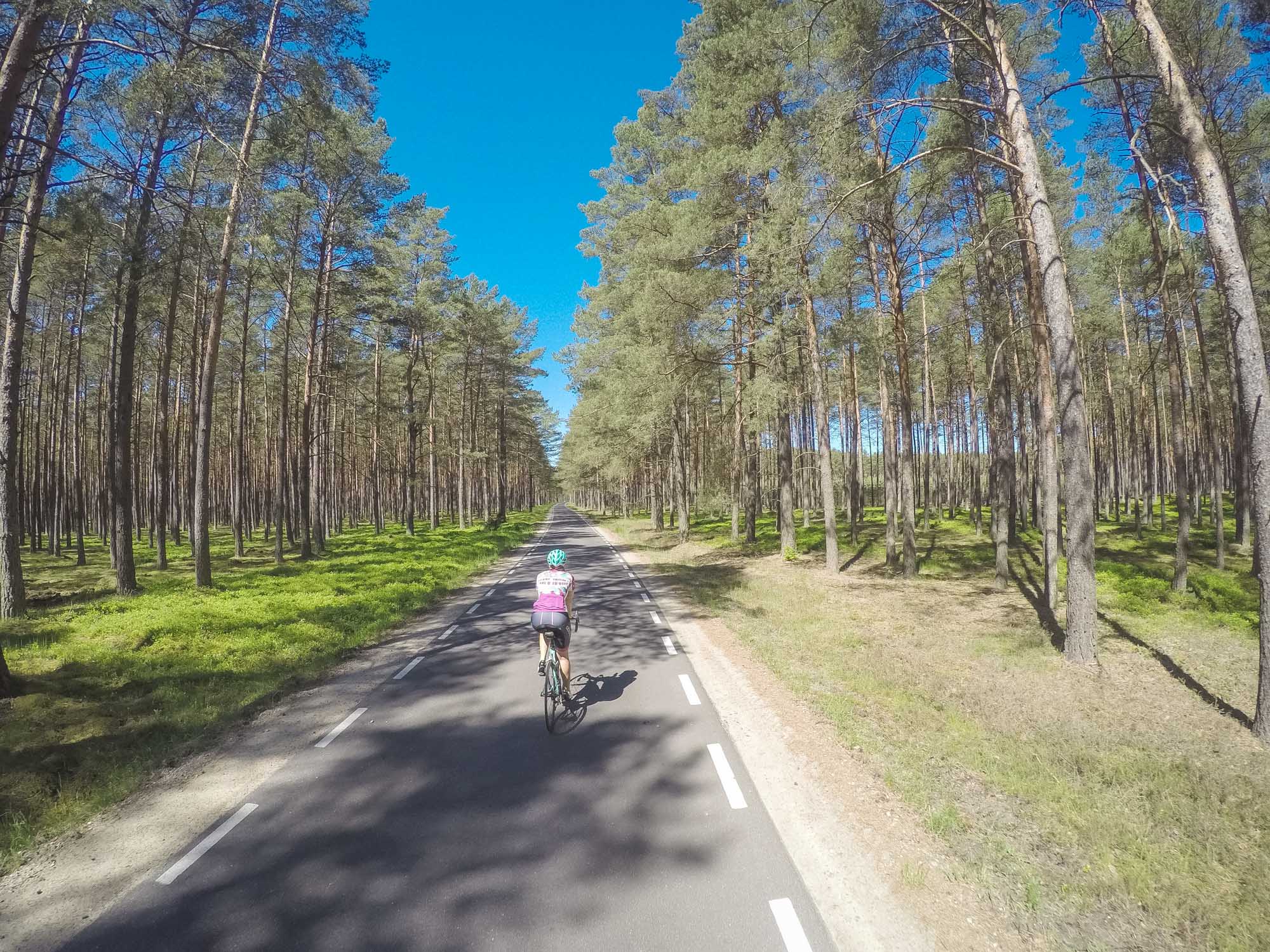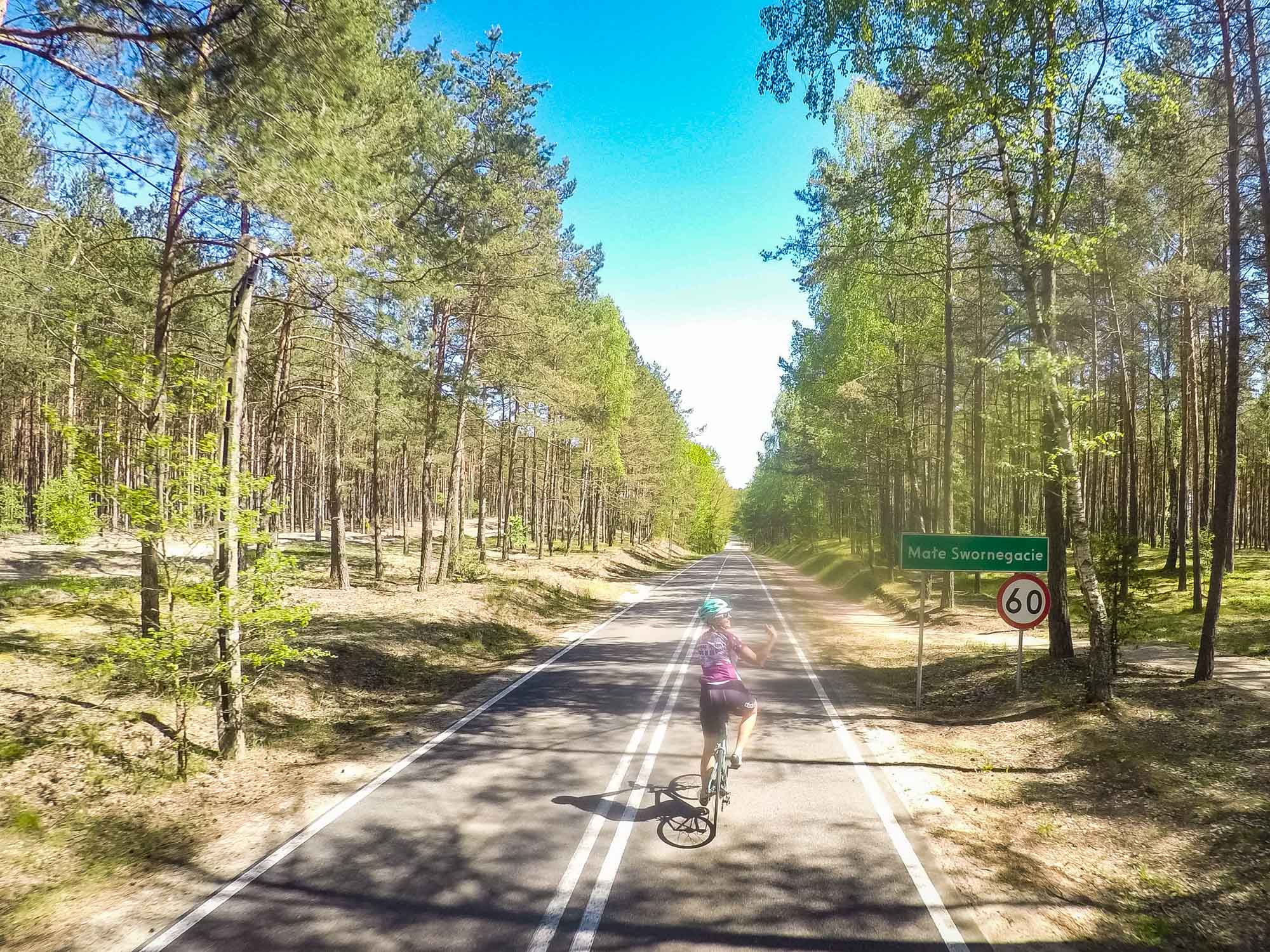 Asfalty są doskonałe albo przeciętne – jakkolwiek głupio to brzmi. I tak na przykład: Park Narodowy Bory Tucholskie ma drogi, w których istnienie byś nie uwierzył. Wygląda to mnie więcej tak: gęsty las otaczający dziesiątki jezior i od czasu do czasu wieś, która utrzymuje się pewnie z agroturystyki i wypożyczania kajaków, a przez środek idzie asfalt. Asfalt tak równy, że chciałbym założyć swoje rolki z podstawówki z plastikowymi kółeczkami i jechać. Naprawdę, to droga, na której możesz wbić w swoje szytki 14 atmosfer. Mało tego, możesz w zasadzie zamienić je na drewniane koła od powozu konnego.