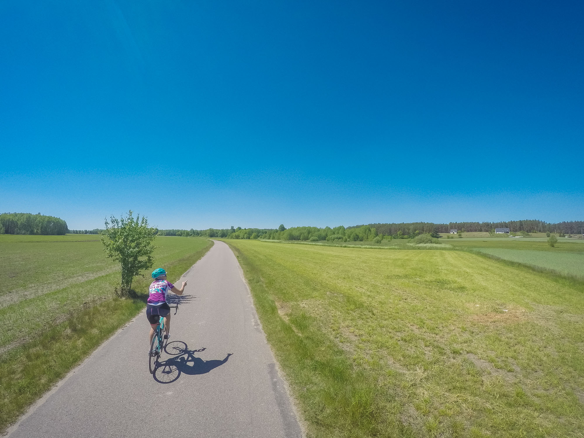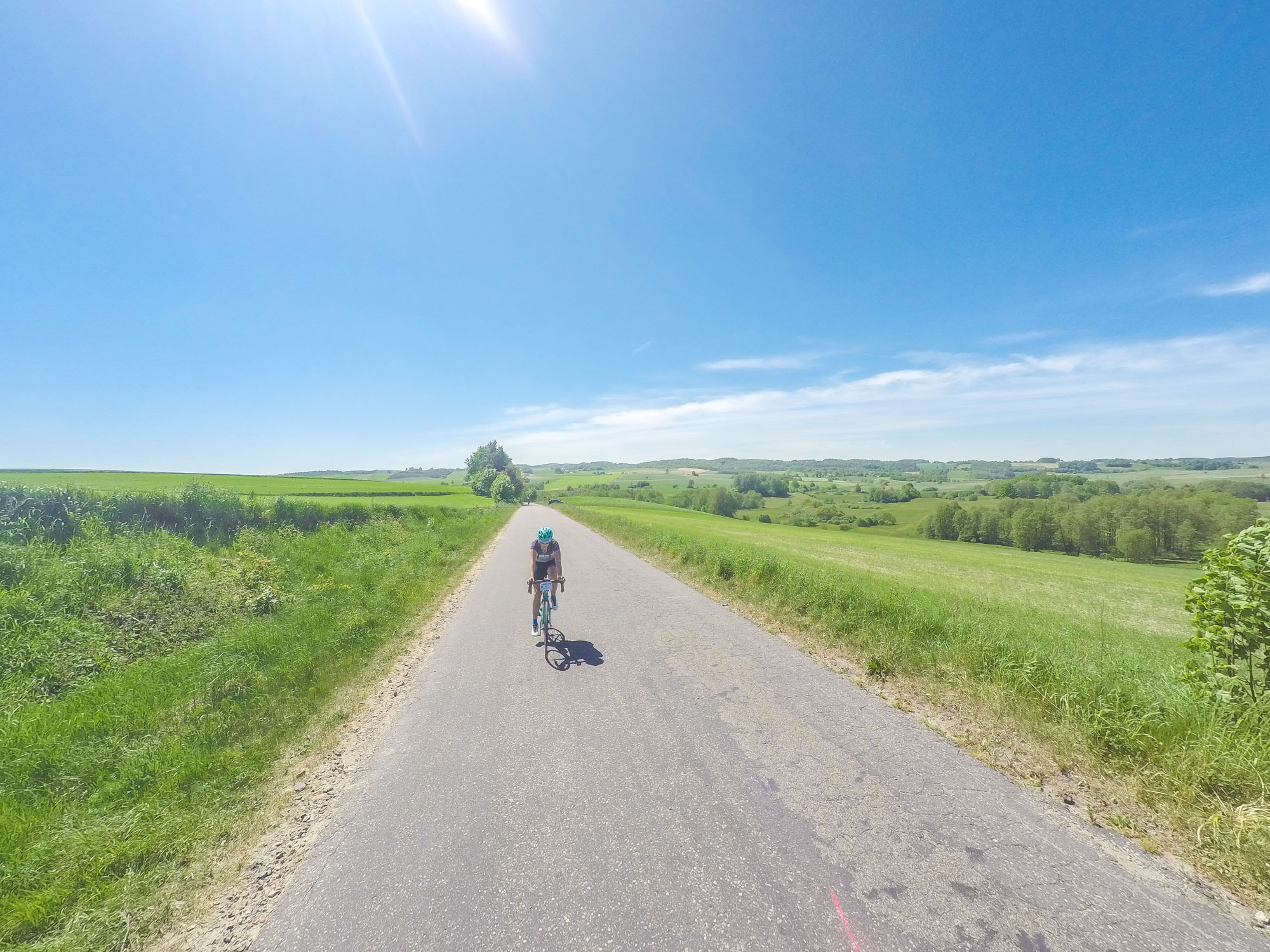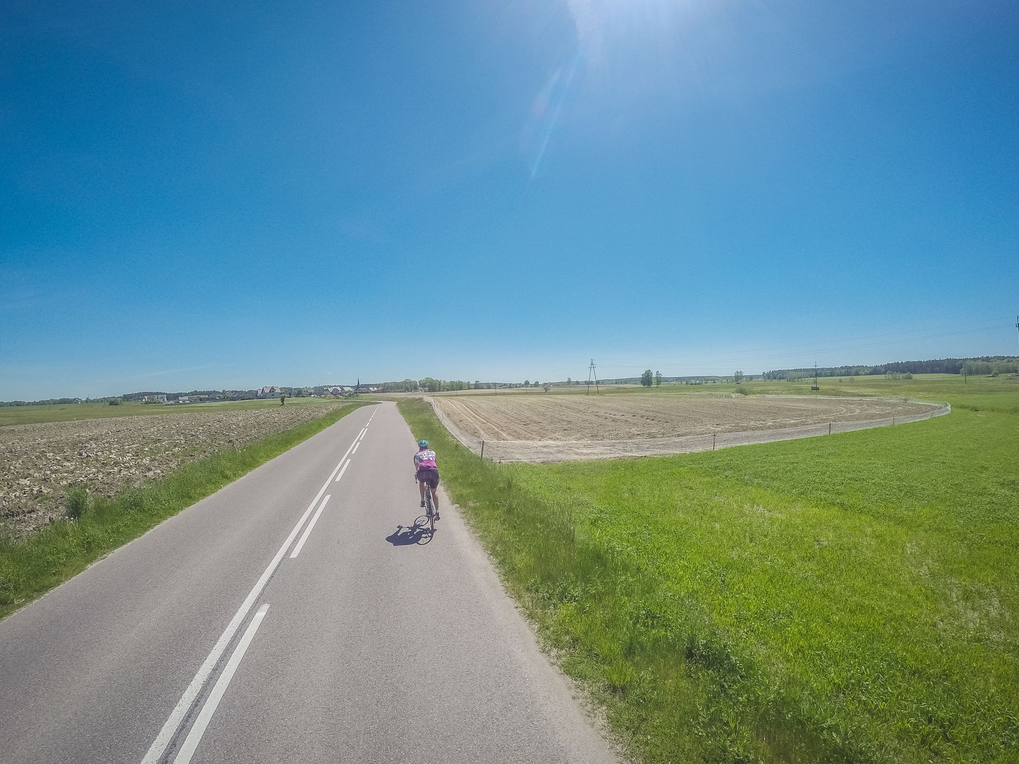 Według mnie – długa runda jest najlepszą opcją. Jeśli więc istnieje cień szansy, że uda Ci się ją przejechać, zdecydowanie polecam. Zarówno pod kątem krajobrazowym, jak i nawierzchniowym. Ciekawym elementem są jednak długie proste, które pozwalają poczuć się jak na trenażerze. Nie pamiętam, kiedy ostatnio jechałem tak długo bez żadnego zakrętu. Droga widoczna po horyzont,  z identycznym lasem non stop, potrafi ciągnąć się tak nawet przez 10 kilometrów. Gdyby to była gra komputerowa, restartowałbym komputer myśląc, że coś się zawiesiło.