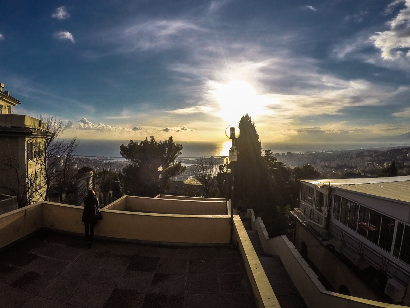 | Panorama Genui – widok ze wzniesień otaczających miasto, na które wjeżdżamy windą lub tramwajem (funicular) | |||